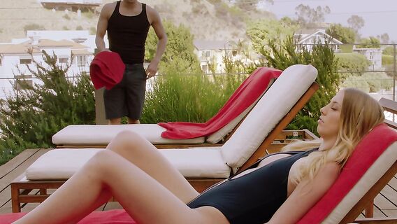Блондинка, отдыхая с парнем, встретила бывшего парня. Страсть заставила её изменить, она жаждала большого члена. Он вылизал её и трахнул в рот и киску, отшлепав по попке и кончив внутрь.
