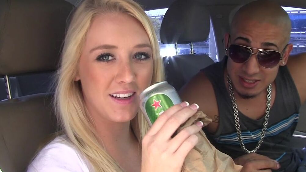 Парень снял блонду с тату на животе и поехал домой. Девушка, не стесняясь его друга, разделась, и мужик трахнул её в разных позах, поставил на колени и кончил, сливая сперму в рот.