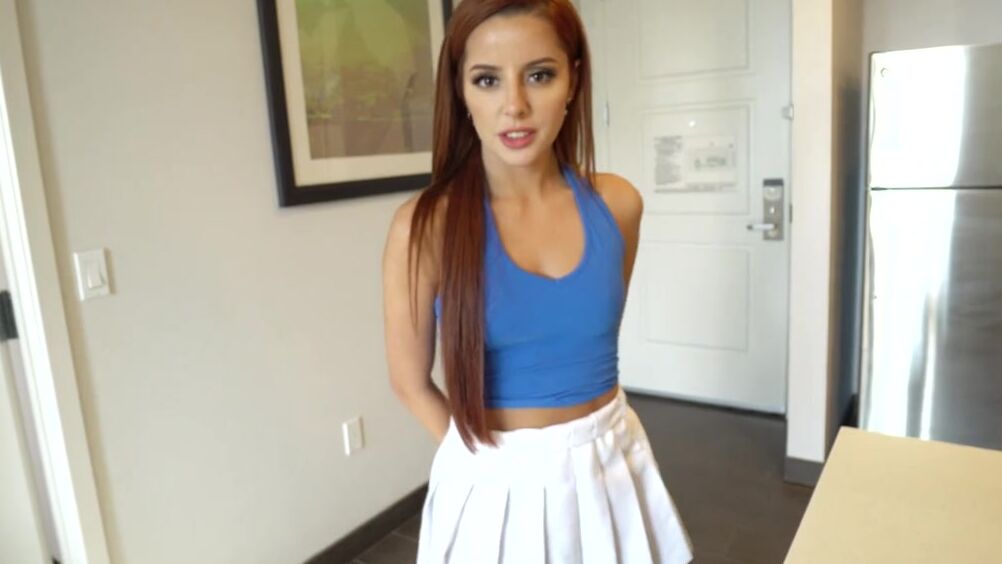 Сводный брат притворился спящим, чтобы поймать рыжую воришку. Девушка отпиралась, но всё равно была наказана большим членом в рот и киску. Она стонала от наслаждения и попробовала сперму на вкус.