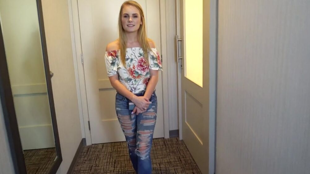 На кровати в гостинице юная блондинка удачно проходит кастинг. Её согласие на секс дарит ей удовольствие, большой член в бритой киске в разных позах и после, горячую густую сперму во рту.