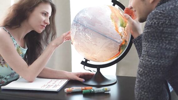Для этой пары география стала особенно горячей. Парень раздел брюнетку и, не снимая трусиков, сделал куни, он трахал её на всю длину члена и увидел, как вытекающая из киски сперма порадовала её.
